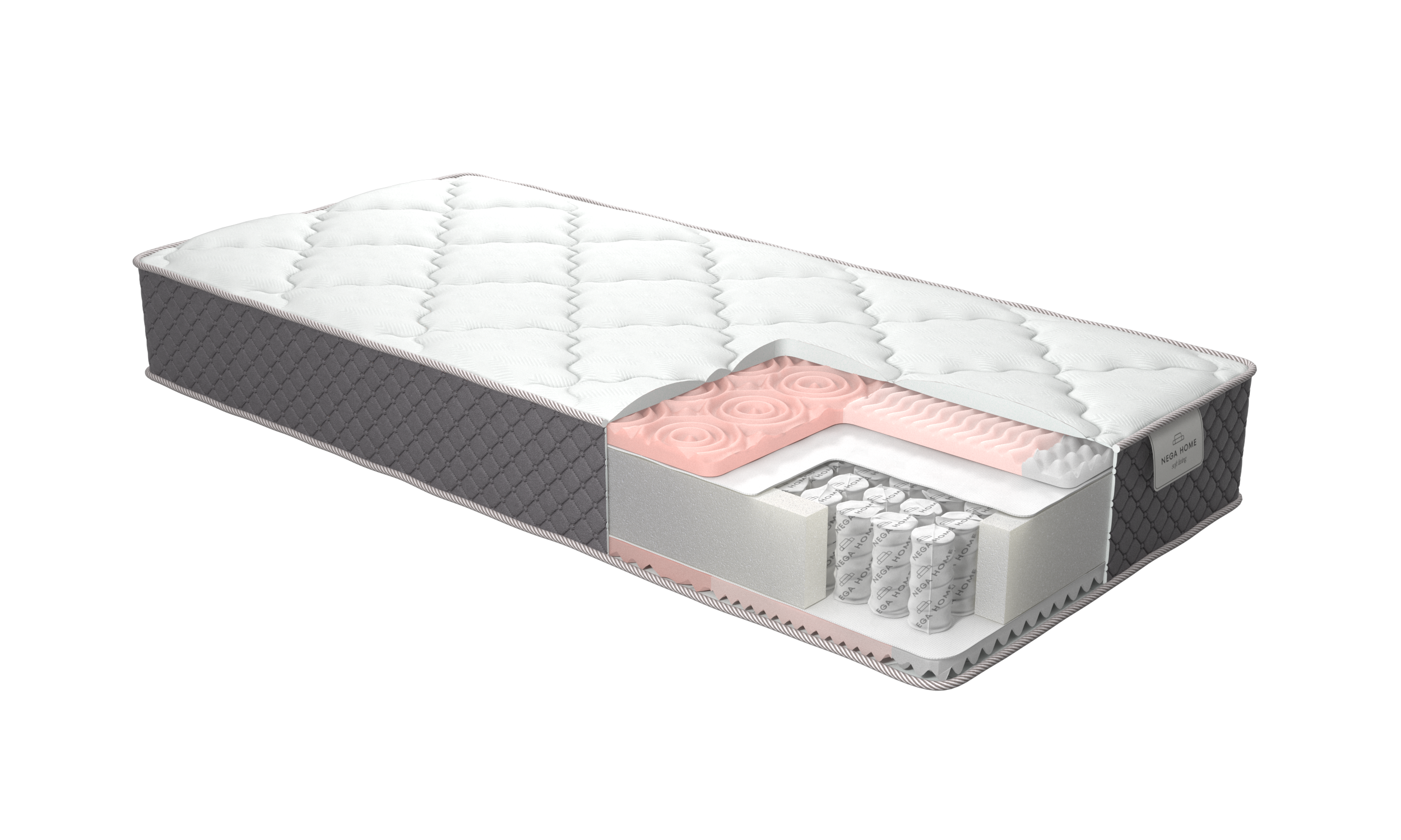 Усиленный блок независимых пружин - особая навивка пружин придает матрасу ту твердость и упругость, которая есть в матрасах с содержанием кокосовых плит