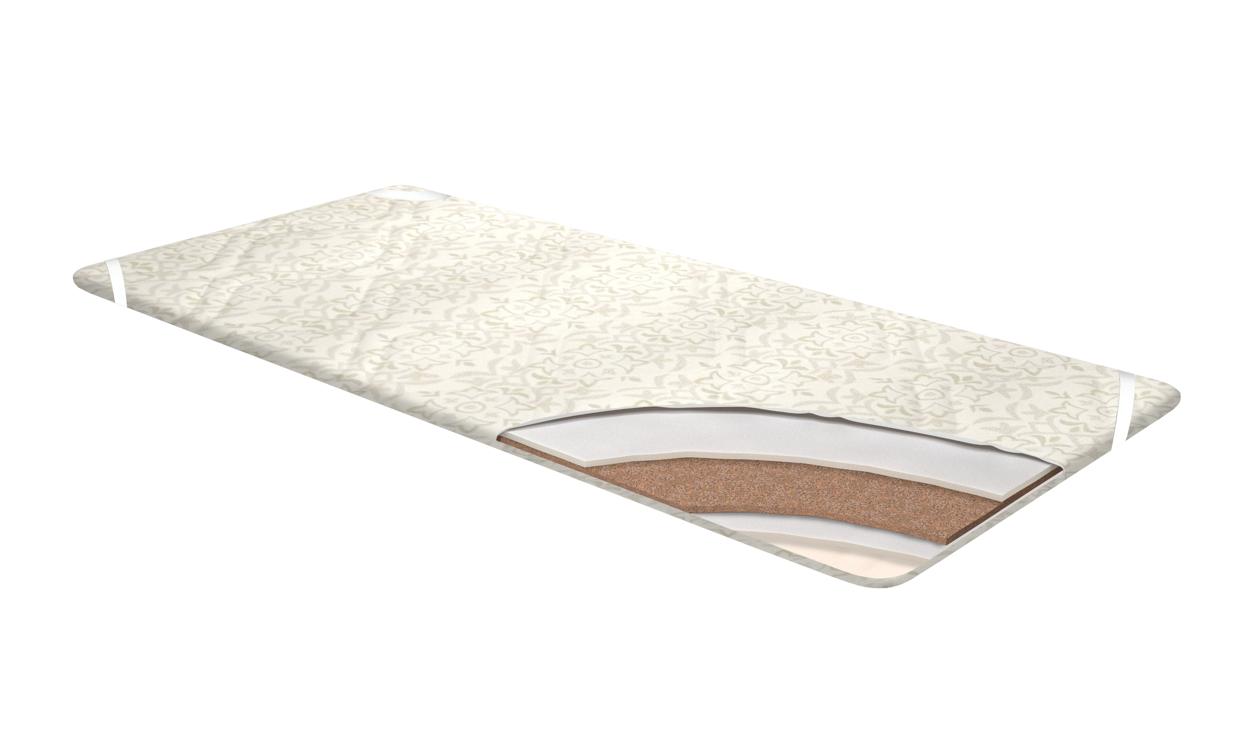 Служит для защиты и изменения жесткости спальной поверхности матраса. Выравнивает поверхность матраса. Чехол наматрасника изготавливается в трикоте или трикотаже, по желанию. Компания-производитель оставляет за собой право вносить конструктивные изменения в модели, а так же изменять вид ткани цельнозашивного чехла в целях улучшения внешнего вида, функционала и потребительских качеств изделия. Состав: Кокосовая плита 10 мм, пена 10 мм